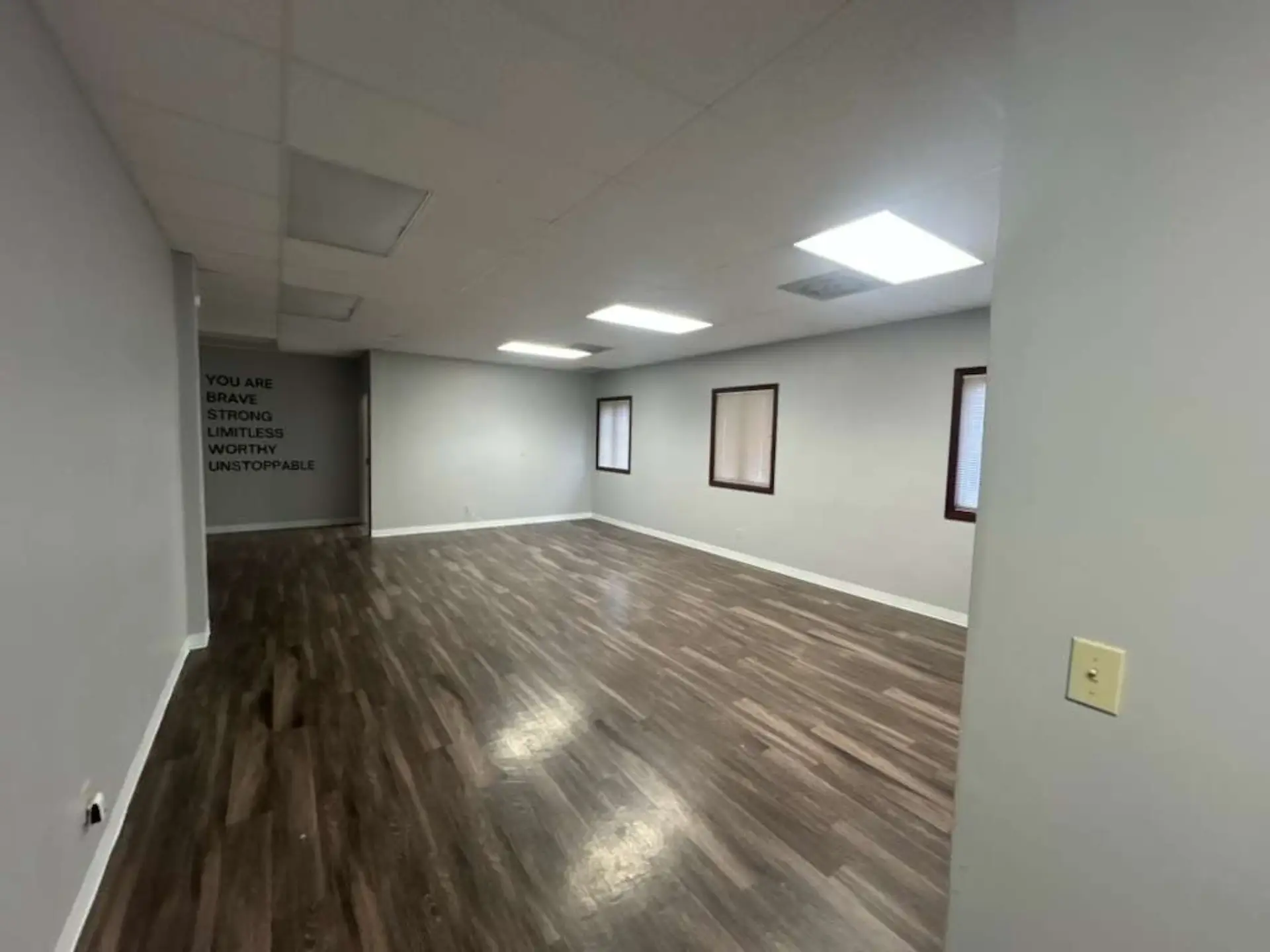 Available suite has Two Private Offices, Open Workspace, Conference Room and Kitchenette/break Room.